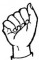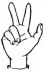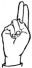 На ћирилици написано РУМЕНА ПОПАДИЋ састоји се из 13 слова [?]. Исписано ћириличном једноручном азбуком за глувонеме: